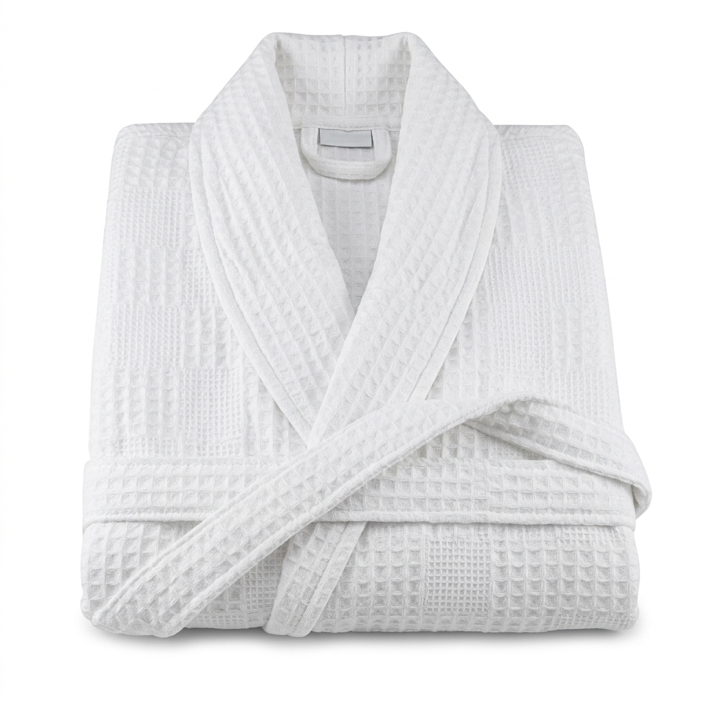 The Waffle Bathrobe uses a distinctive waffle weave that creates air pockets in the fabric. This makes it significantly lighter and faster to dry than terry, with a breathable quality that does not retain body heat. In Kenya’s warm and humid coastal environments, Nairobi’s moderate year-round climate, and any property where guests will wear a bathrobe in a warm room or walk through an air-conditioned corridor to a pool, the waffle construction is the professional recommendation. It feels structured and intentional without being heavy.