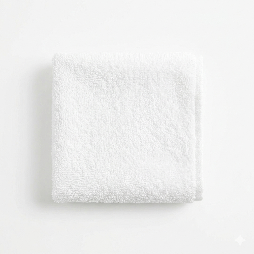 A face towel (also called a face cloth or flannel) measures approximately 30cm × 30cm and is designed specifically for facial use — fine-pile, ultra-soft, dedicated to direct skin contact. A hand towel measures 40–50cm × 70–80cm and is designed for drying hands after washing. In a hotel room, both are provided separately. The B&B White Face Towel is 30cm × 30cm, 600GSM Egyptian cotton, for facial use.
