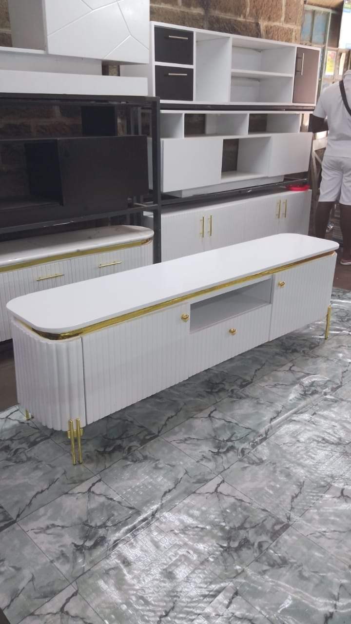 Buy a TV Stand in Kenya: Modern White & Gold TV Stand with Cabinet for Furnished Apartments